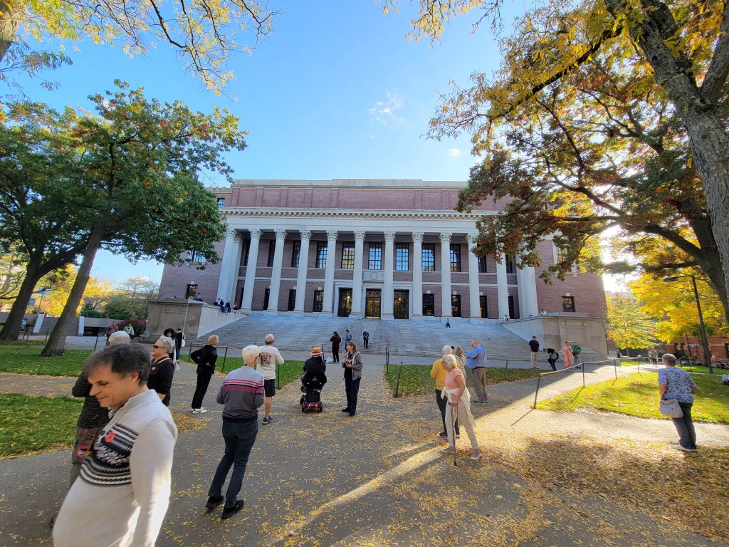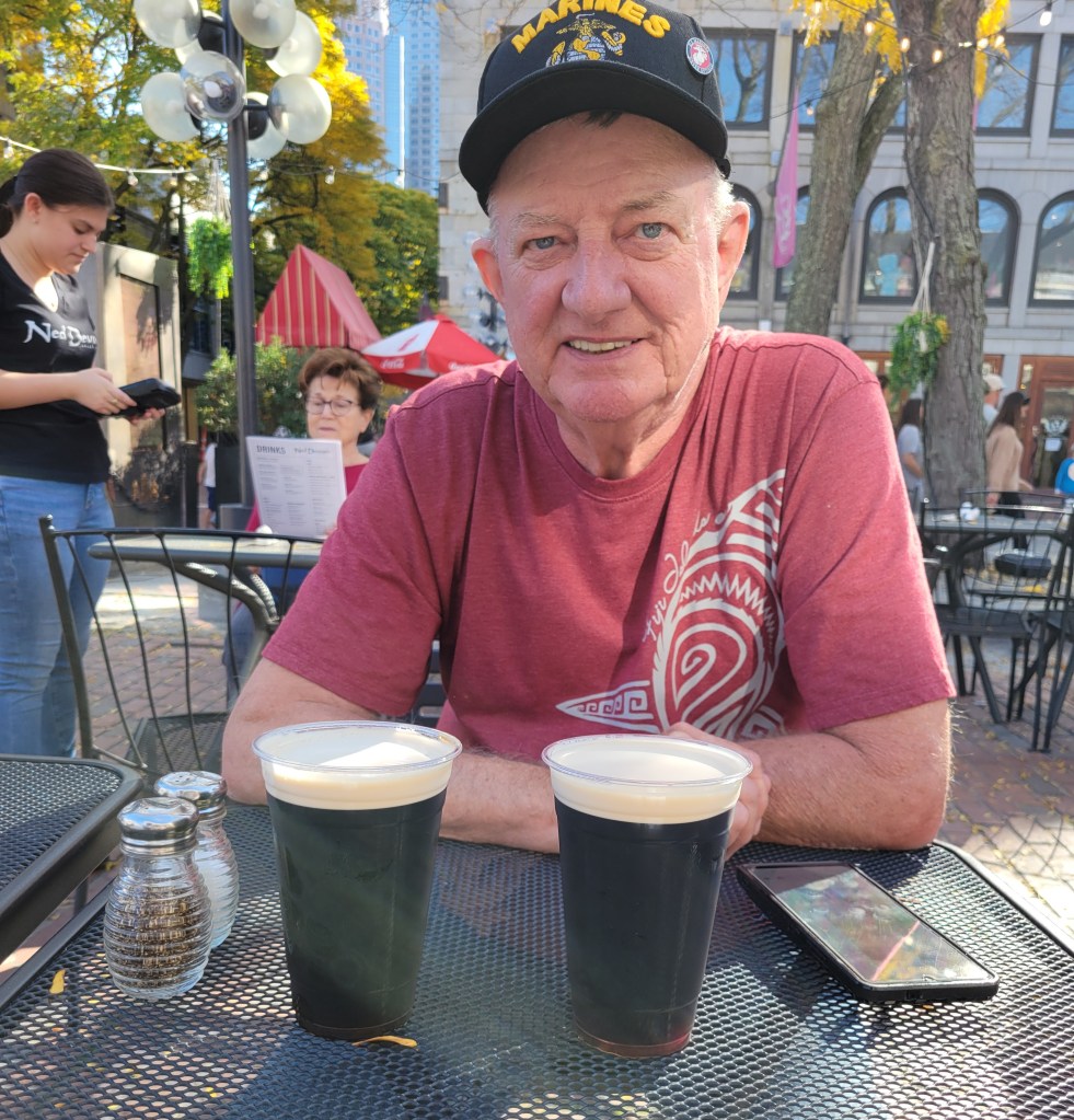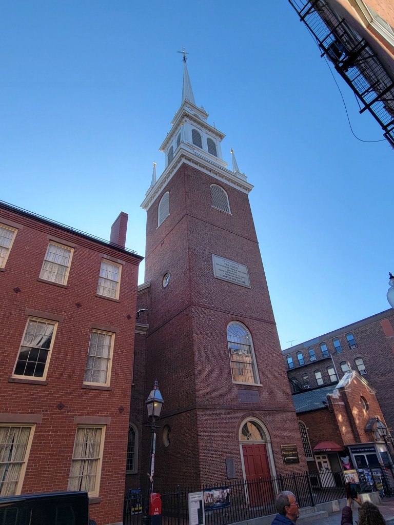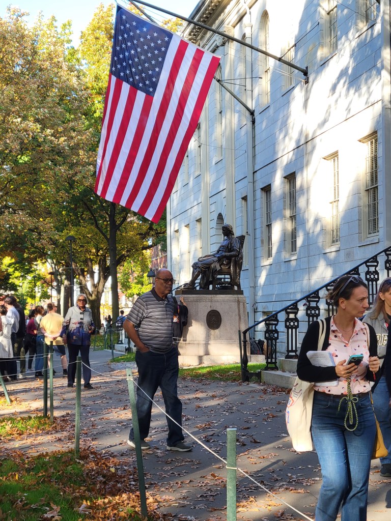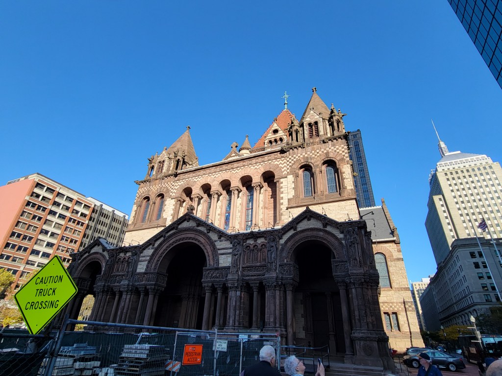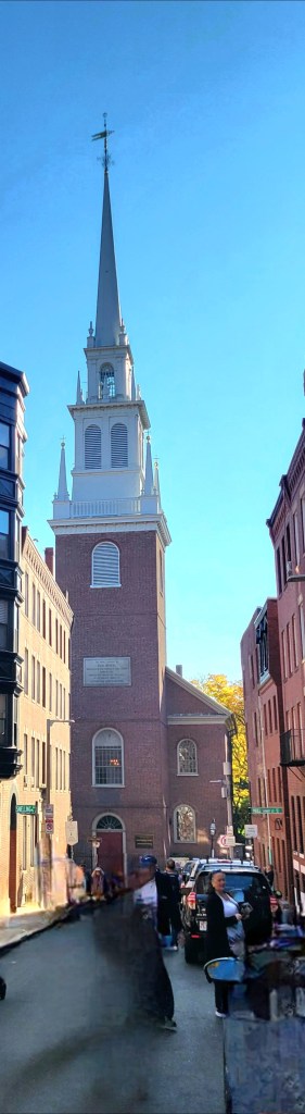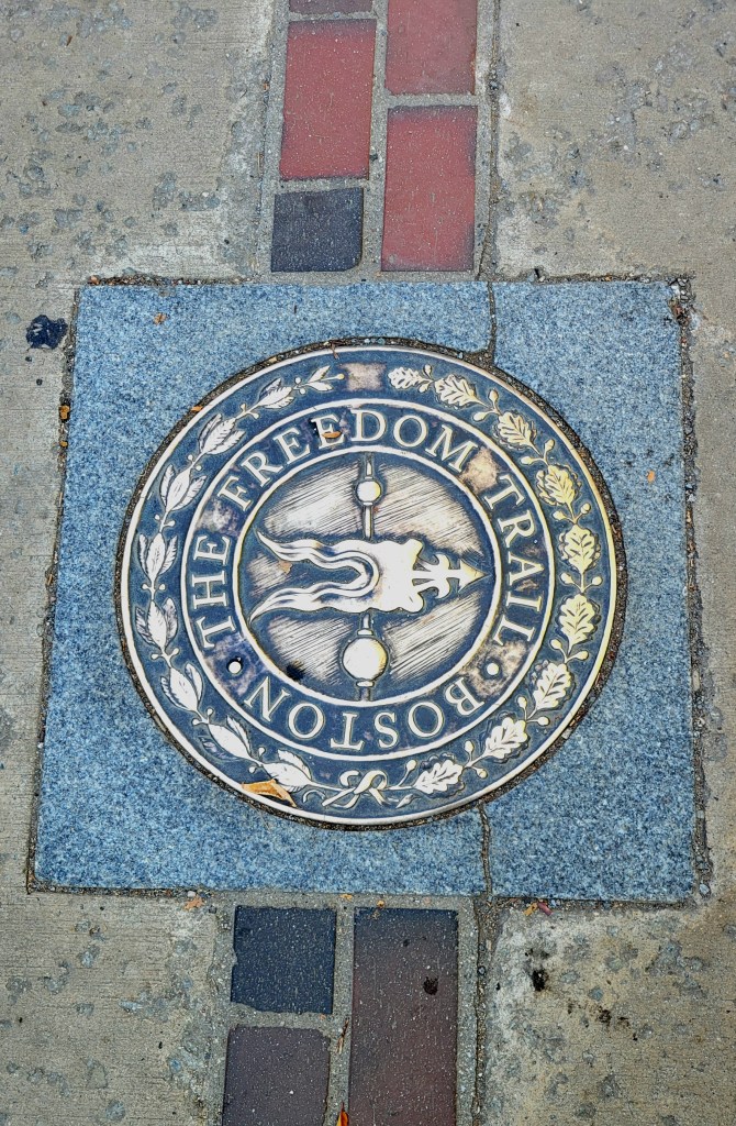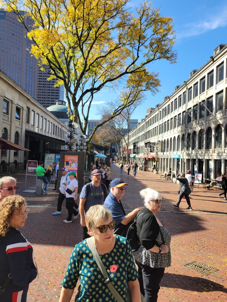 Oh, what a day!!! I always wanted to walk “the Freedom Trail” and now I had my chance …. except Pat’s knee had other ideas. So change of plans (walking the 3 -4 miles was not an option). If you know me, I’m always looking at the silver lining or the new open door …. I turned in my tickets for the Freedom Trail and booked a bus trip, a full day one. So, after a good breakfast we boarded our bus with Dick Jacobson, our tour guide, for the next 7 1/2 hours. Probably one of the best, most informative, enjoyable tours ever. I could have listened to Dick for a few hours more. He was great. I learned so much history. So my day in Boston wasn’t what I expected, it was so much better. One current Boston fact was “the Big Dig” the largest, most expensive highway project in the United States. Planning started in the 1982, funding approved in 1987, ground broken in 1991 and finished in 2007. It involved rerouting the interstate running through the center of Boston into the 1.5-mile Tip O’Niell Tunnel. adding 2 new bridges, another tunnel into Logan International Airport and filling in the old interstate space with greenspace and parks. The initial cost was estimated at 3 billion but as with most projects, they weren’t close … how about 24.3 billion. One cool trivia fact, while traveling in the tunnel, if the tile stripe is brown, you are traveling under land, if the tile stripe is blue, you are traveling under water.