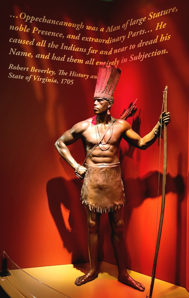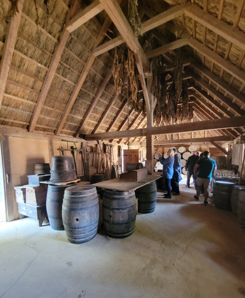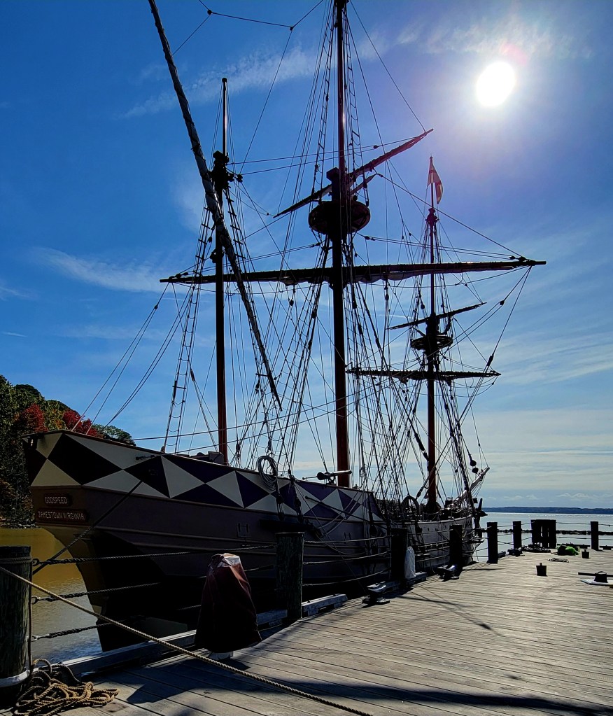 Jamestown Settlement, a re-creation of the original. On May 13, 1607, 3 ships, the Susan Constant, the Discovery, the Godspeed, 104 men and boys landed on the shores of the James River and began the first permanent English settlement in North America. Over the next few years, the relationship with the Powhatan Indians were tenuous at best. The settlers were dying from a variety of disease and those that did survive in the beginning were due to the help of the Powhatan Indians providing food. But by the winter of 1610, “the starving time”, somewhere between 80-90% of the settlers had died. The settlement was on the verge of abandonment, when in 1612, John Rolfe, the husband of Pocahontas, introduced tobacco, and the settlement became productive. In 1619, 2 major events occurred, 90 women were brought over from England to become wives, and the first documented Africans were forcibly captured and brought to work the tobacco fields.