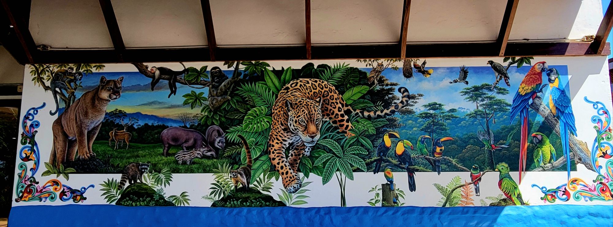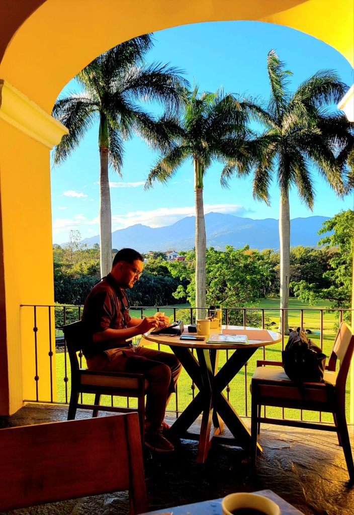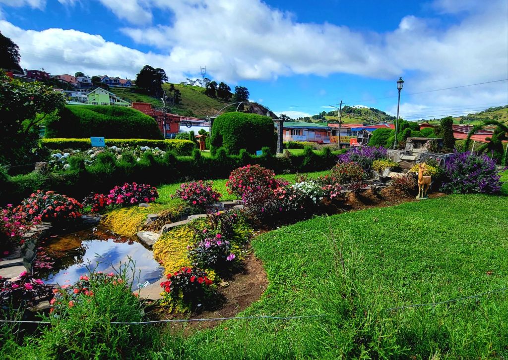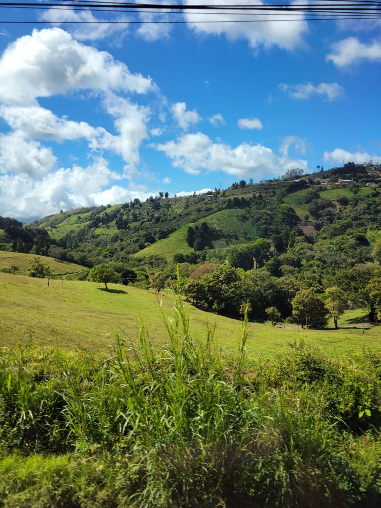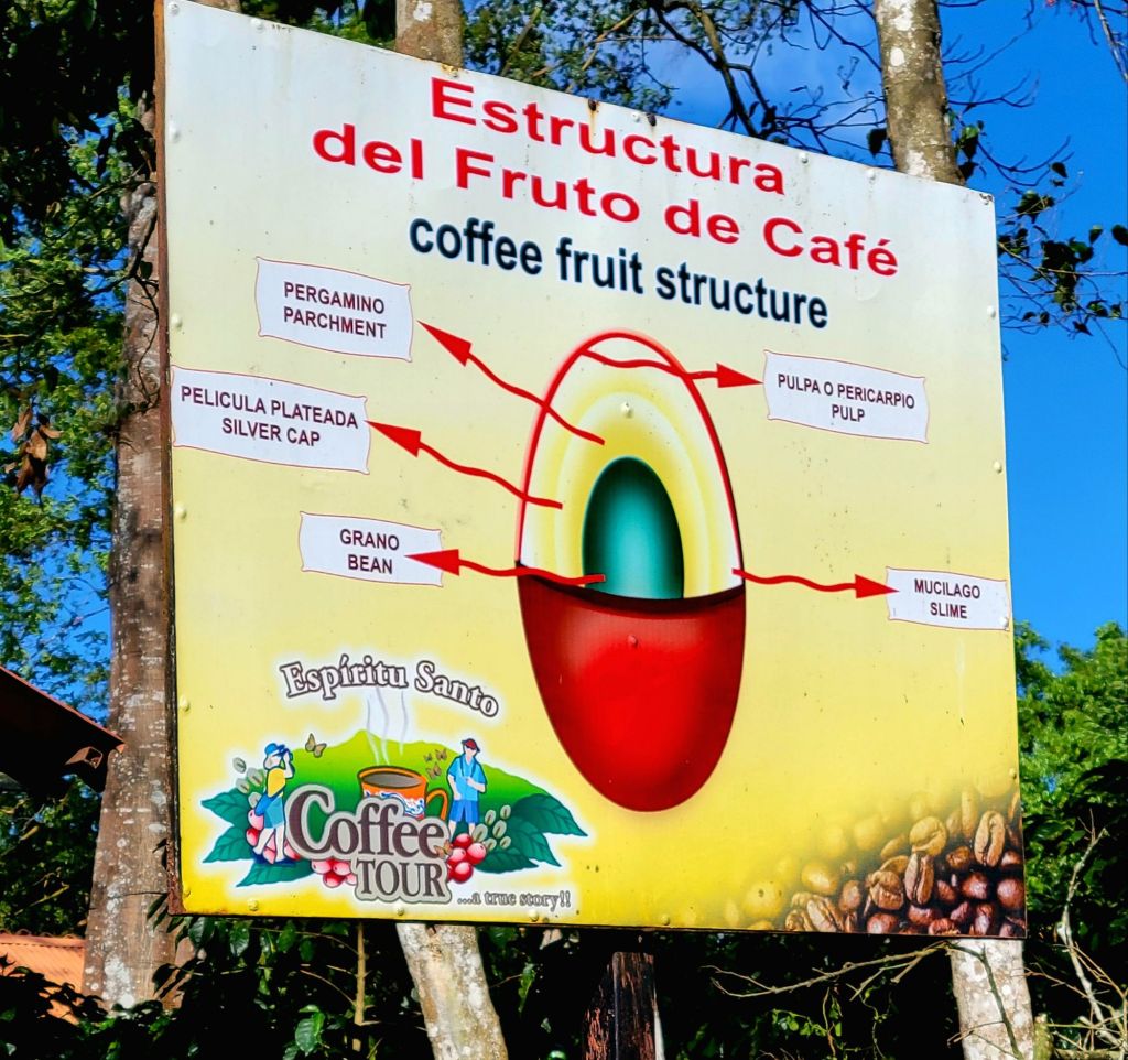 An early morning. Breakfast at 6:30 am, which was extensive and amazing and then on the bus at 8 am. Ozzy and staff have already secured our luggage on the bus. Ozzy had our seat assignments posted and Mr Peeples, the two toed sloth, is his able seating assistant. He lets us know which side of the bus exits first. All on time and settled in .., and we are off. First to a coffee plantation, Espiritu Santos, a local coffee farm that has been in the family for many generations. They take a great deal of pride in the quality of their coffee. Then lunch and shopping in Sarchi, a town well known for the local artists and craft items. Next a quick stop in Zarcero, and on to our home for the next two nights.