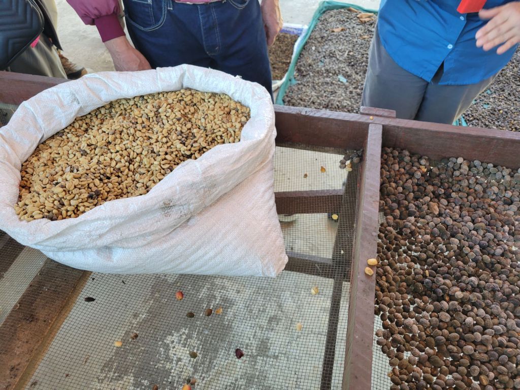After hand picking, the cherries need to be dried. they can dry in the sun for about a week, but need constant attention. If they are dried by heat it only takes hours. then the seeds are removed from the Cherries. Each cherry usually has 2 beans.Rainbow eucalyptus