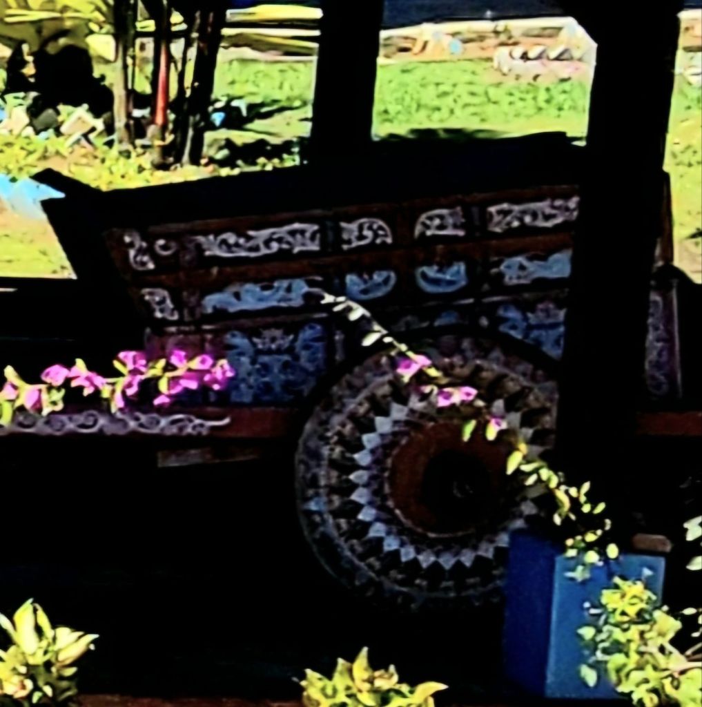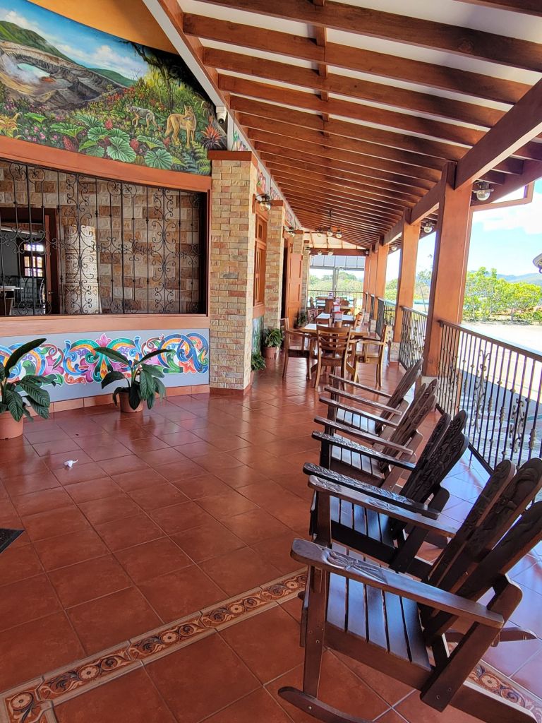 outside passageways at restaurantLargest ox cart in Costa Rica