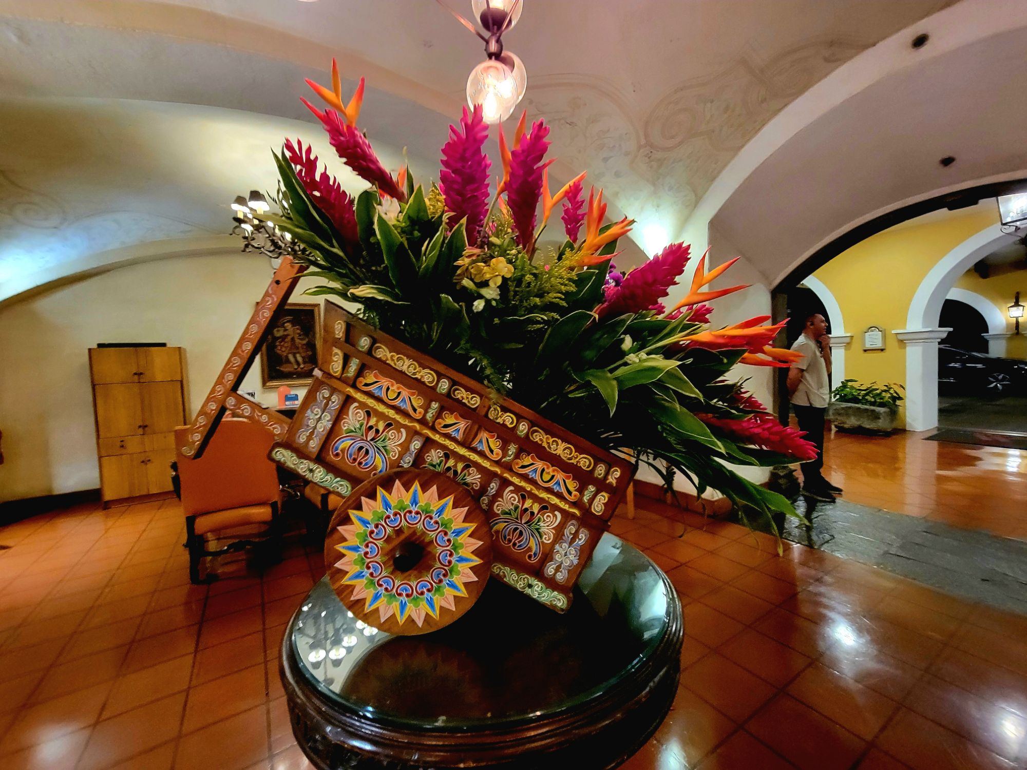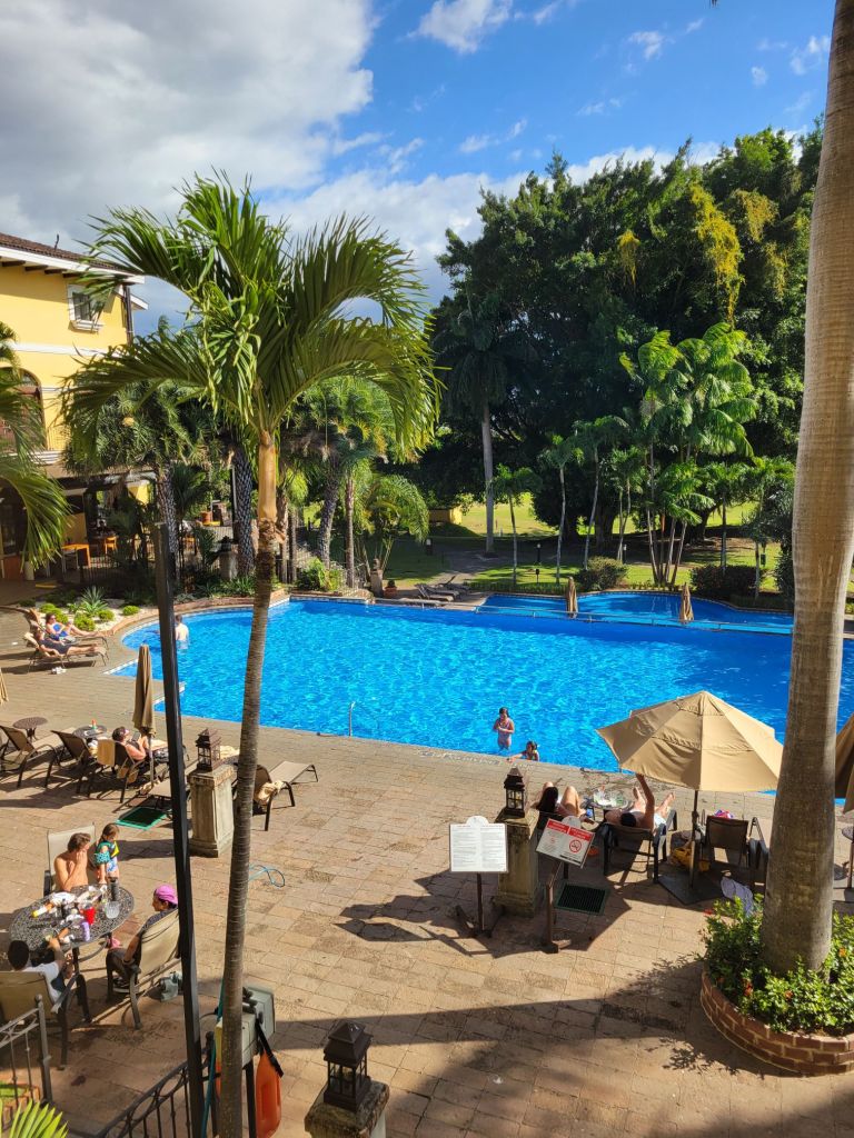 We flew this morning from Fort Lauderdale to San Jose, Costa Rica. A quick Taxi to Costa Rica Marriott Hacienda Belan. After a quick look around, we met our tour guide Osvaldo “Ozzy” Padilla and our new family for the next 7 days. Costa Rica is a land bridge between North and South America. I was formed by 3 Teutonic plates over three million years ago. It was “re-discovered” in 1502 by Christopher Columbus. The Central Volcanic range has over 200 volcanos, 10 are still active. The highest point is 14,000 feet above sea level. The volcanic range divides Costa Rica in half. The dry side is the Pacific coast, the wet side is the Caribbean rain forest. It is the most biodiverse area in the Americas, with Northern species traveling South and Southern species traveling North. The current population is about 5 million, with 65% living in the Central Valley. People who are from Costa Rica refer to themselves as “Tico”. Costa Rica declared it’s independence in 1830. Since 1948 Costa Rica has no standing military.