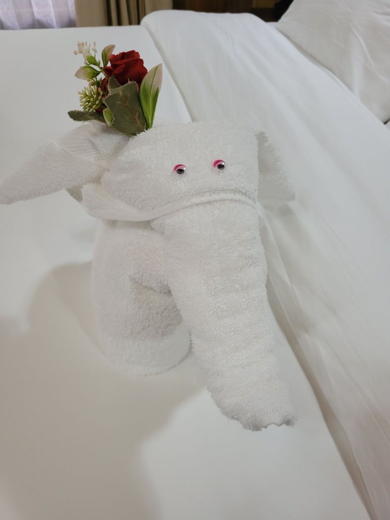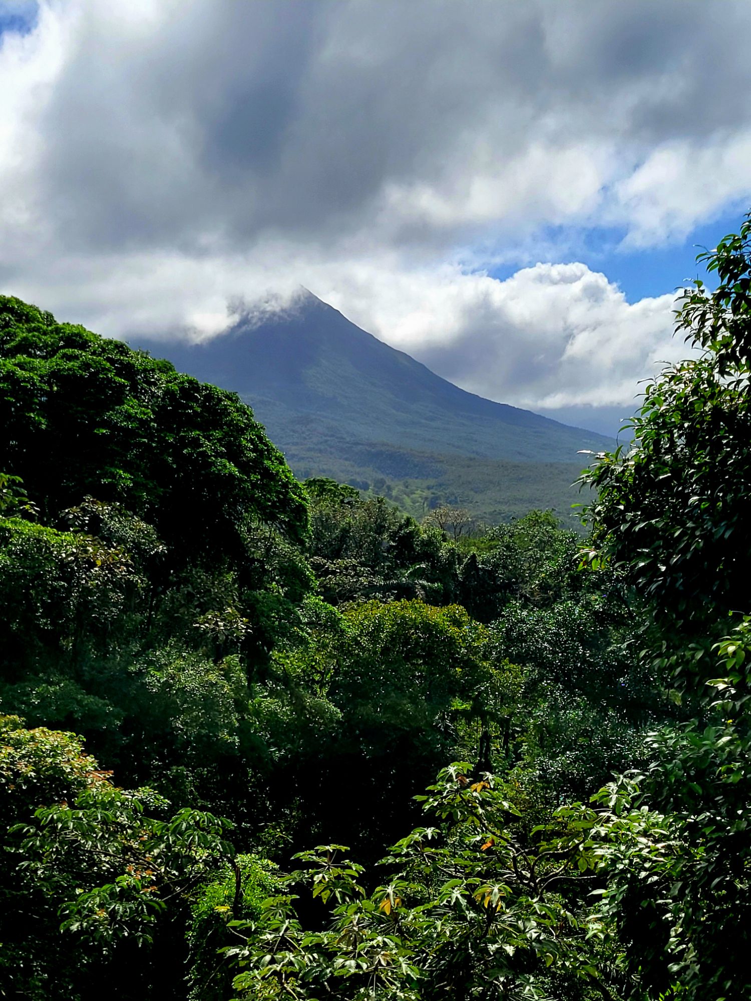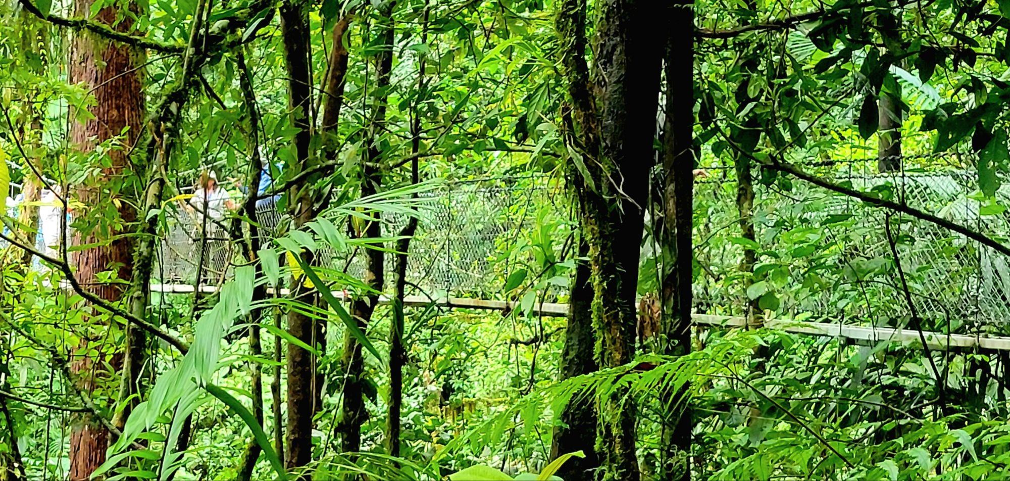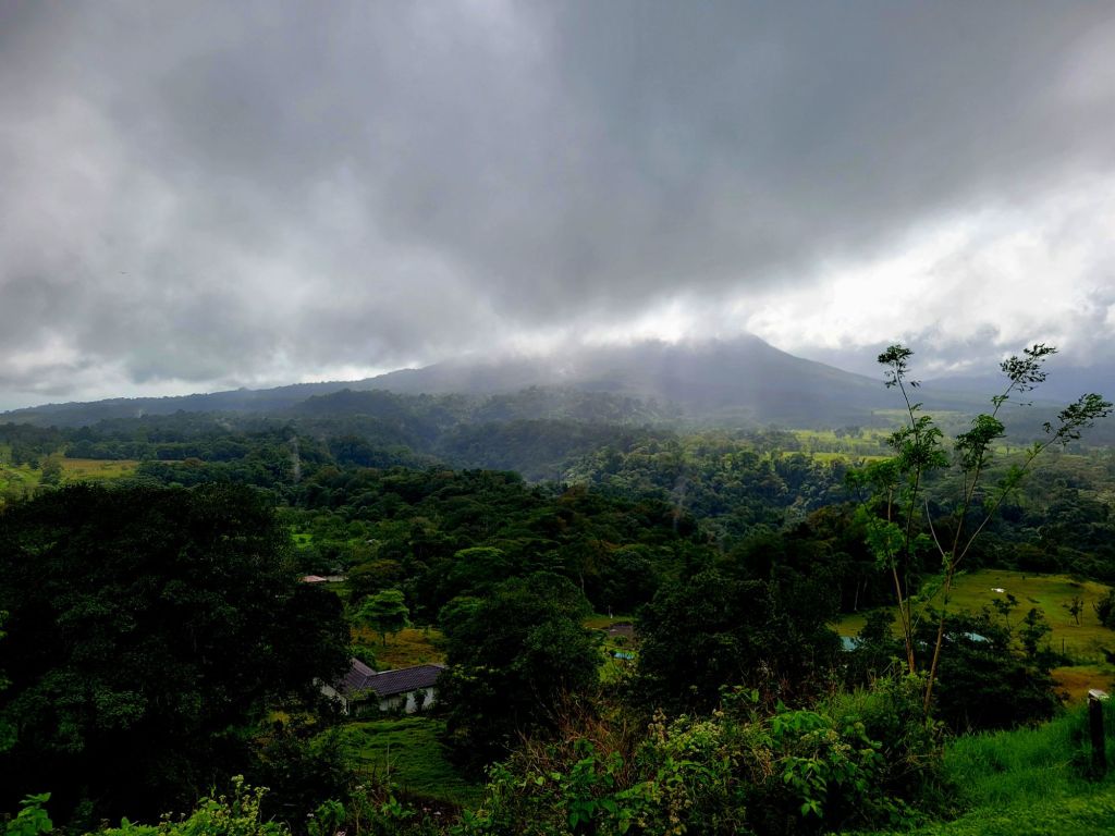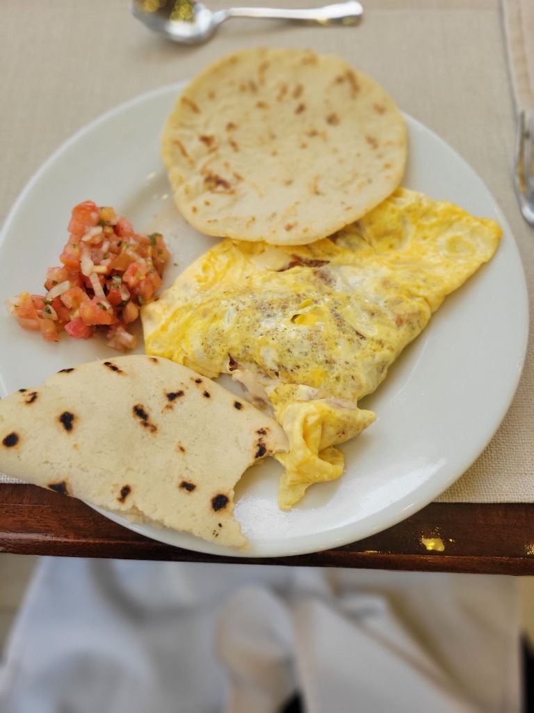 A small town that began to flourish with eco-tourism in the 1970’s. It is located at the base of the Arenal volcano. It is about 1800 feet above sea level. In 1968 the cone shaped Arenal volcano erupted at 7:30 am. The devastation was extensive. There are some areas that will never totally recover. There were 70 deaths. At this time, many hot springs were created and there are many hotels and tourist areas that include these hot springs. In 1970, a dam was constructed and created Arenal Lake. It is a well-known fishing spot for Rainbow bass. We are staying at Lomas del Volcan hotel. I cannot even do justice to our accommodations. We have individual cabins in our own little spot of heaven. Two queen beds, a huge bathroom, a front porch, but the best is the back porch with a view of the rainforest. Even though there are a lot of cabins, it feels very private. We were warned to keep our doors closed and locked …. not from any people, but if it was open, monkeys might visit and help themselves to whatever. We had a bit of time to rest, then off to our included dinner. It was delicious. Pat got a grilled steak and I had a filet. Some of the best beef ever. Today we had breakfast with one of my favorites, homemade corn tortillas. On the bus by 7:30 am and thank you Ozzy for making this an early departure. Off to Misticopark, about a 30-minute ride. Definitely kudos to our bus driver. Not an easy drive for him. We did the Arenal Hanging bridges. Haven’t experienced anything quite like it. About a 2 hour, 2 mile hike in a rainforest, with 20 bridges, some stationary, some cable suspended. The path is well maintain, the bridges are checked daily for safety. And they are not kidding when the say “hanging”. You are way up in the air, crossing some pretty long stretches. The longest was 95 meters. Ozzy is a naturalist, so his insight into the rainforest, it’s residents and its ecosystem was amazing. I learned so much. Parts of it were challenging for me, some long inclines and steep downward switchbacks, and it definitely helped me get over my fear of heights (I think). Back to the hotel and a cooking lesson. We made homemade corn tortillas and watched them make picadillo, a potato dish. We crashed for the afternoon. We chose to eat dinner here instead of going into town. We weren’t that hungry and still a bit tired. I had a chicken & shrimp quesadilla and Pat had cerviche. Both were excellent. Shower & bed, as tomorrow is another new adventure.