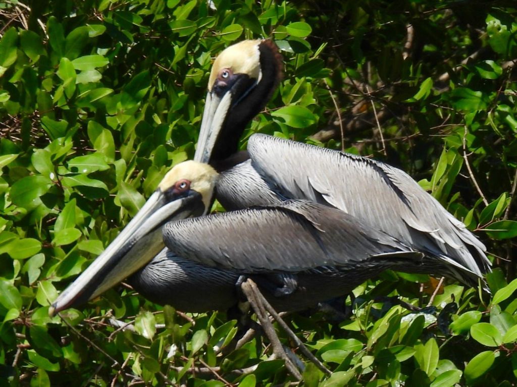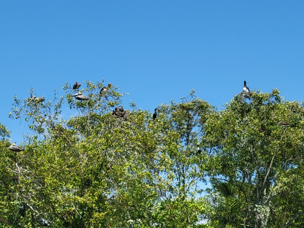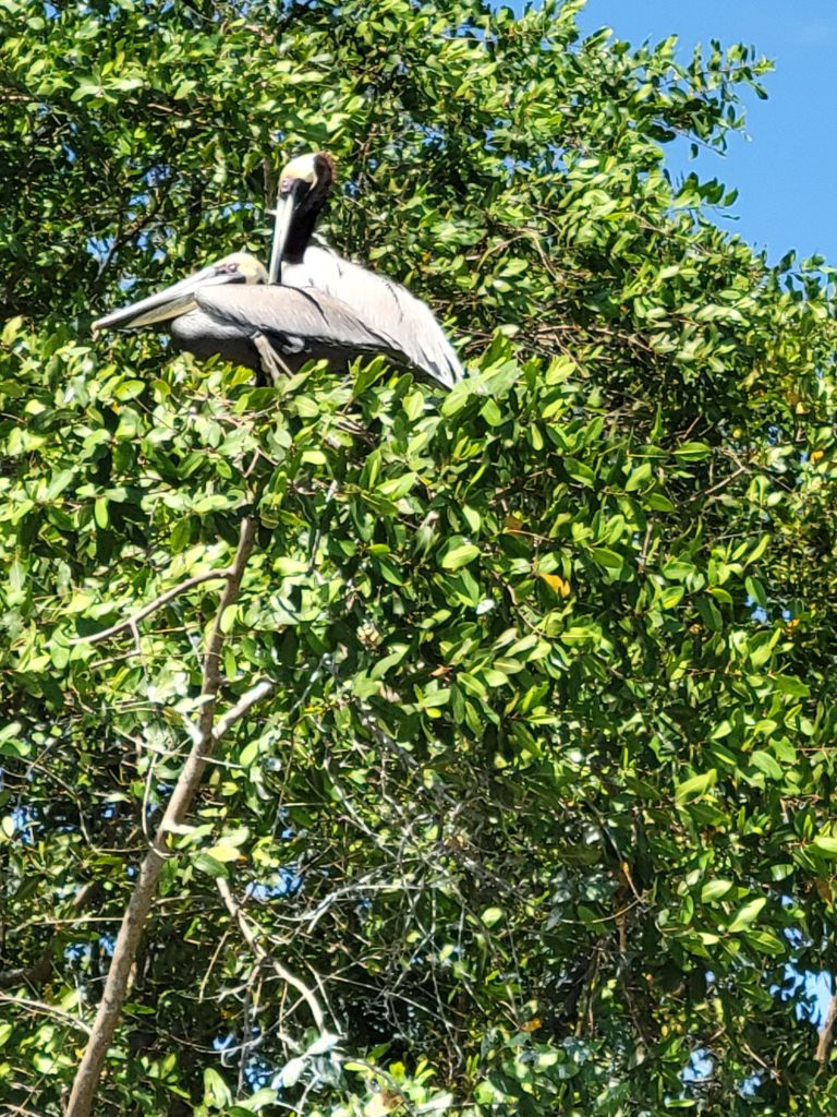 So many pelicans roosting in the tree topsyellow-crowned night heron