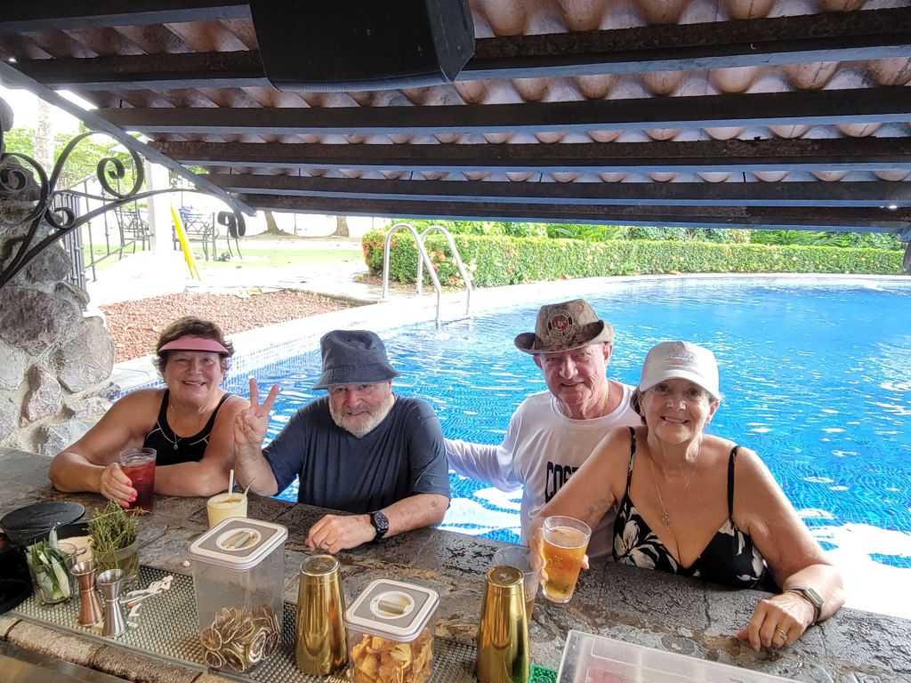 Another relaxed start. On the bus at 10:30 am and headed to a Crocodile safari and bird watching boat excursion on the Tarcoles River. The Tarcoles River is one of the longest rivers, almost 69 miles, in Costa Rica and home to one the the world’s largest crocodile populations. There are over 50 varieties of birds, icluding the once endangered Scarlet macaw. I’ve tried my best to name the birds. Some of the pictures are mine, some are Ozzy’s, but they all were taken today. After the boat ride, we had lunch at the same place. We had chicken fried rice Costa Rican style, salad, and a local dessert. Then back to the pool which was a wonderful temperature and had a great pool bar. A few drinks and cerviche for Pat. We actually skipped dinner because we were still full and tired. We also knew we had an early morning departure.