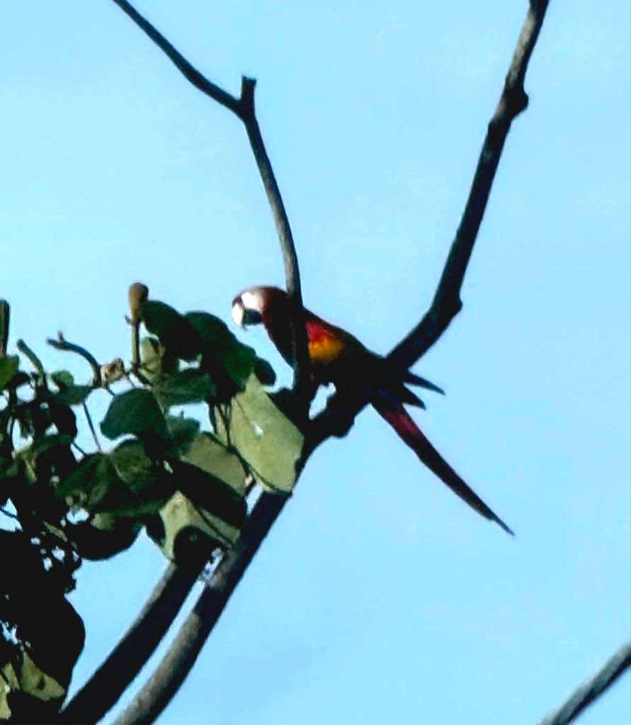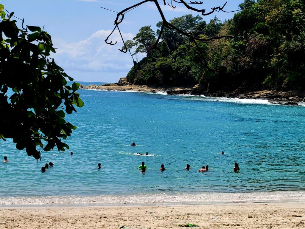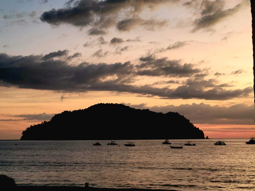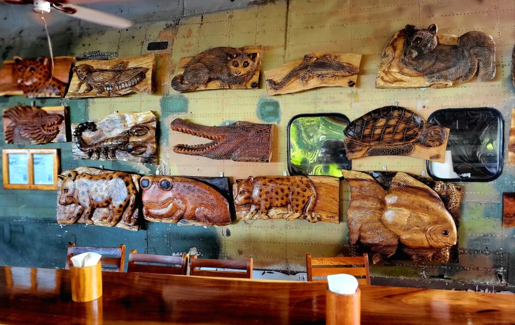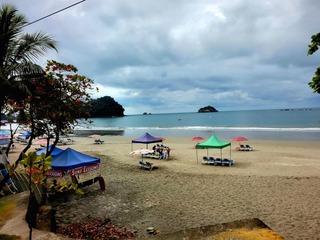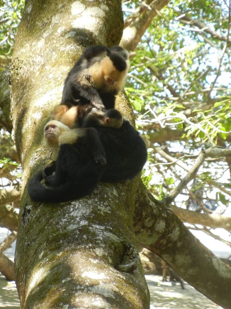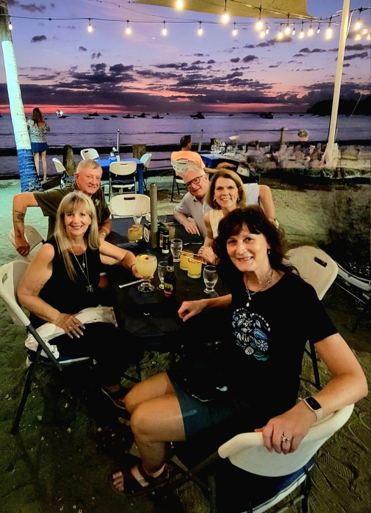 An early morning start needed an alarm. Breakfast at 6:30 am an on the bus at 7:30am. Off to the world-famous Manuel Antonio National Park. We needed an early morning start because it could be very crowded. The 2 hour drive seemed long, but very interesting. Ozzy gave us a lot of history of the area and of Manuel Antonio NP. We had to leave the bus and walk about 500 yards slightly uphill on a gravel path to the entrance of the park. We did have to wait in line to get into the park but were entertained by a white-faced spider monkey. Unfortunately, I didn’t get a picture. Once in the park, we spent about an hour walking 3/4 mile, sometimes flat, sometimes a slight grade uphill. It was a much wider path and it wasn’t difficult, but you did have to pay attention to where you were walking. We stopped often to view different trees, birds, lizards and sloths. Did I mention that we were in a tropical rain forest, and it was extremely humid. The pictures I’m posting were all taken today by either myself, Ozzy or a member of our group. When we reached the top of the hill, we took a right and headed toward the reward for our hot, sweaty walk …. the beach and the Pacific Ocean. We couldn’t wait to get in and the water temperature was perfect. The beach was white sand and the bottom of the ocean was also sand. So enjoyable. We stayed in about 45 minutes. No waves, no sharks, no fish. Head out on the sand path by the ocean through the Tropical Dry Forest. We then began our hike back through the Mangrove Swamp Forest. It was a nice deck-like walkway, about 8 feet wide and about again 3/4 mile long, back to the entrance of the park. Then back the small gravel path to the bus. Our next stop was in Quepos for lunch at El Avion. What a treat. We had a great meal, Pat said the best cerviche yet and my chicken Nachos were great. The pictures of the place will tell it’s own story. After the long drive back, it was a nice dip in the pool. Dinner was at Coco’s on the beach. Great margaritas, delicious fish, absolutely beautiful setting and priceless memories with new friends.
