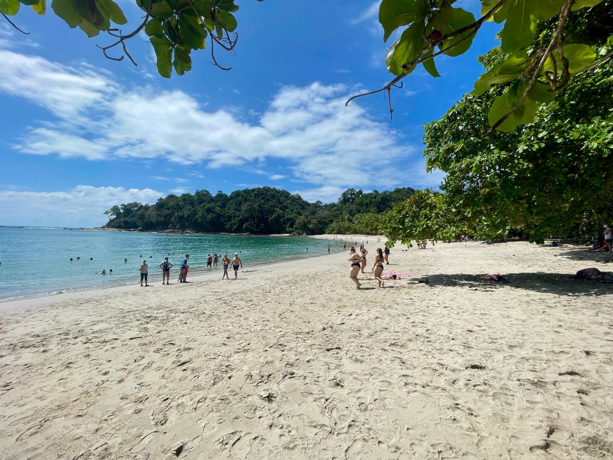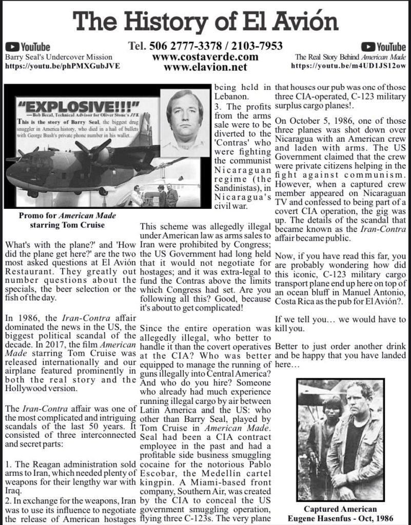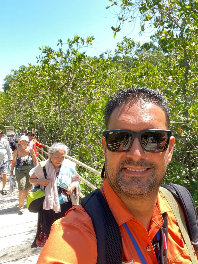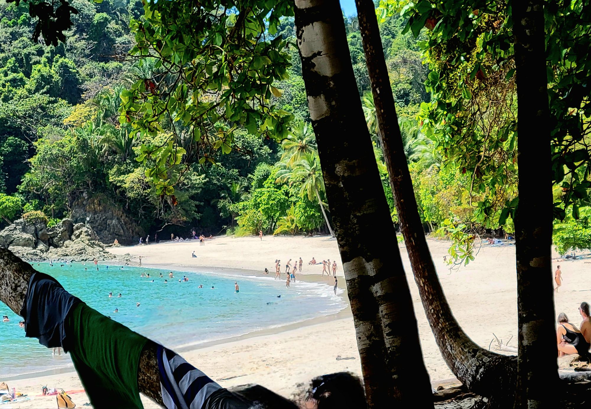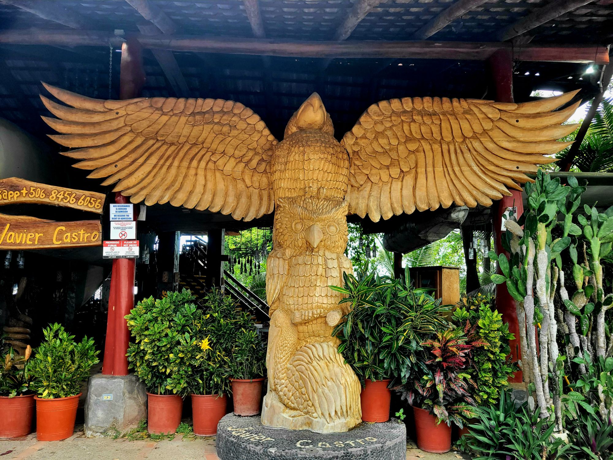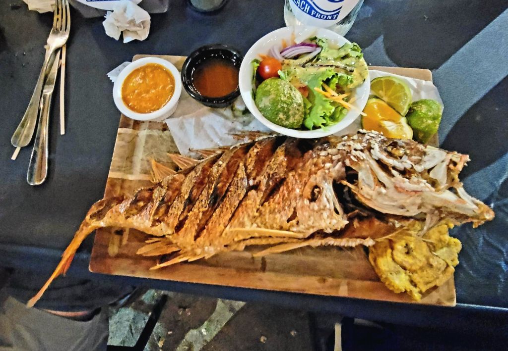 An early morning start needed an alarm. Breakfast at 6:30 am an on the bus at 7:30am. Off to the world-famous Manuel Antonio National Park. We needed an early morning start because it could be very crowded. The 2 hour drive seemed long, but very interesting. Ozzy gave us a lot of history of the area and of Manuel Antonio NP. We had to leave the bus and walk about 500 yards slightly uphill on a gravel path to the entrance of the park. We did have to wait in line to get into the park but were entertained by a white-faced spider monkey. Unfortunately, I didn’t get a picture. Once in the park, we spent about an hour walking 3/4 mile, sometimes flat, sometimes a slight grade uphill. It was a much wider path and it wasn’t difficult, but you did have to pay attention to where you were walking. We stopped often to view different trees, birds, lizards and sloths. Did I mention that we were in a tropical rain forest, and it was extremely humid. The pictures I’m posting were all taken today by either myself, Ozzy or a member of our group. When we reached the top of the hill, we took a right and headed toward the reward for our hot, sweaty walk …. the beach and the Pacific Ocean. We couldn’t wait to get in and the water temperature was perfect. The beach was white sand and the bottom of the ocean was also sand. So enjoyable. We stayed in about 45 minutes. No waves, no sharks, no fish. Head out on the sand path by the ocean through the Tropical Dry Forest. We then began our hike back through the Mangrove Swamp Forest. It was a nice deck-like walkway, about 8 feet wide and about again 3/4 mile long, back to the entrance of the park. Then back the small gravel path to the bus. Our next stop was in Quepos for lunch at El Avion. What a treat. We had a great meal, Pat said the best cerviche yet and my chicken Nachos were great. The pictures of the place will tell it’s own story. After the long drive back, it was a nice dip in the pool. Dinner was at Coco’s on the beach. Great margaritas, delicious fish, absolutely beautiful setting and priceless memories with new friends.