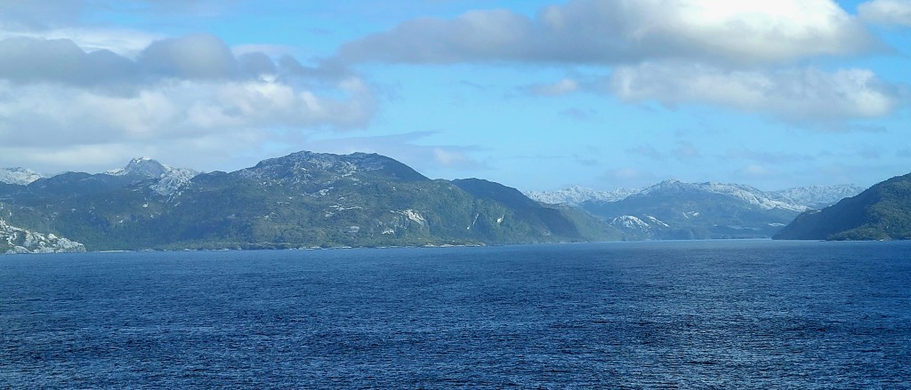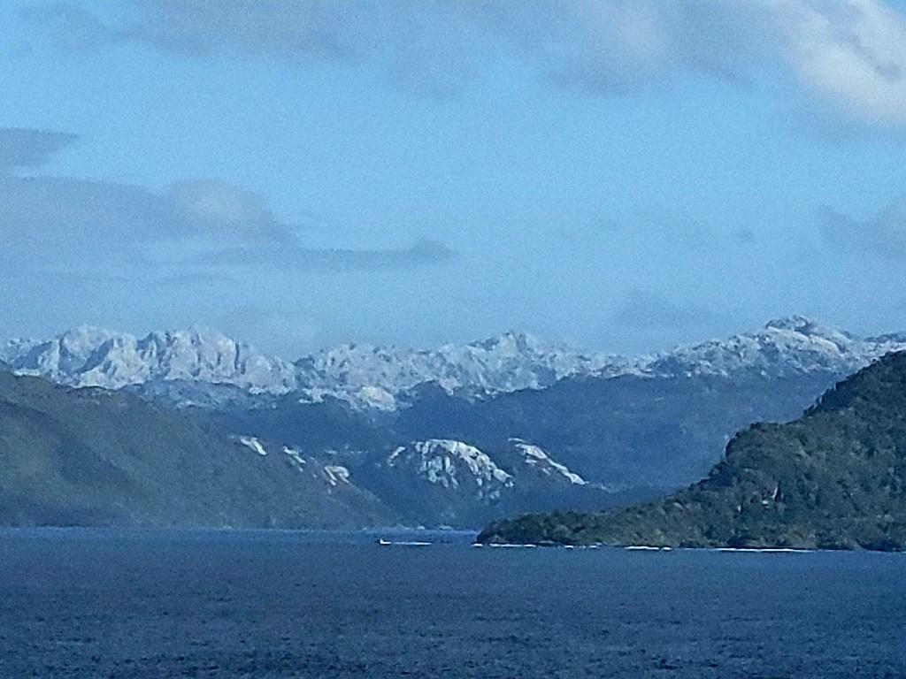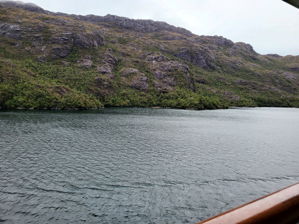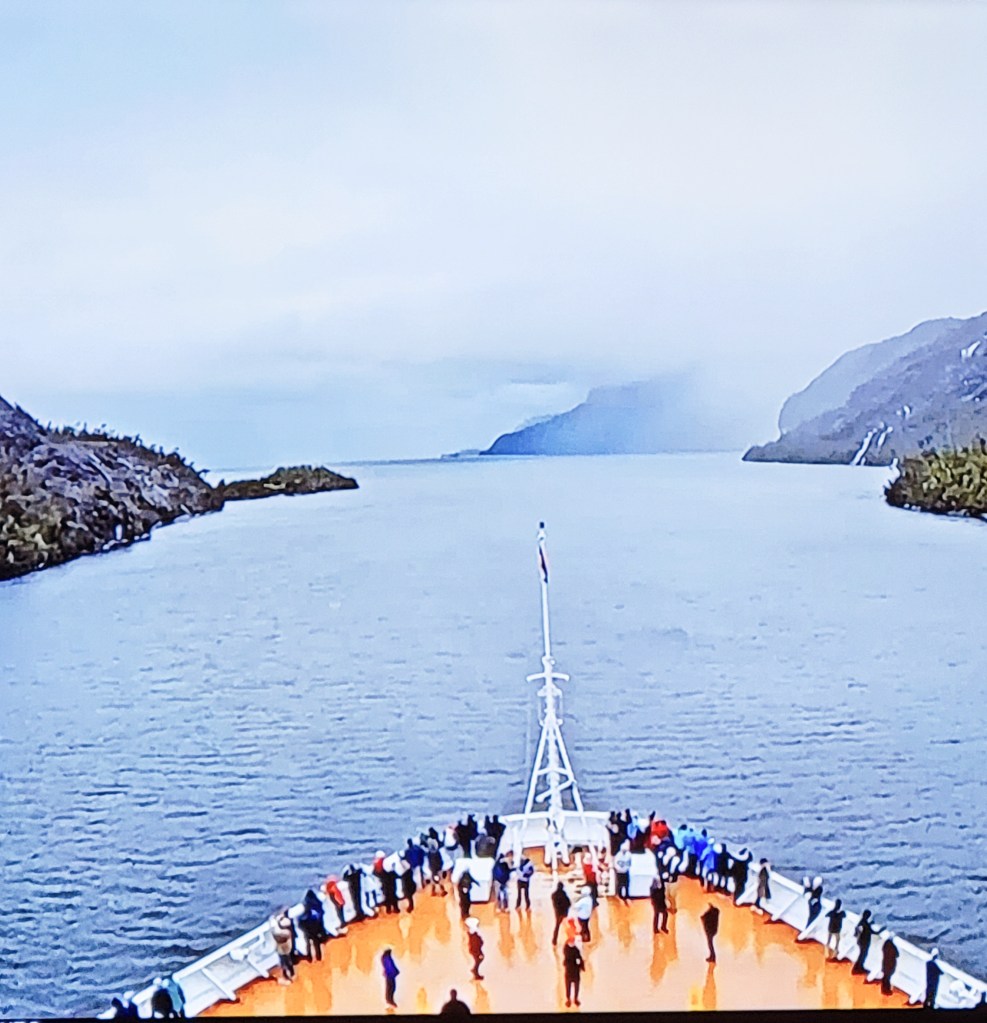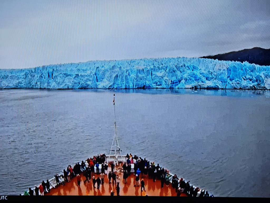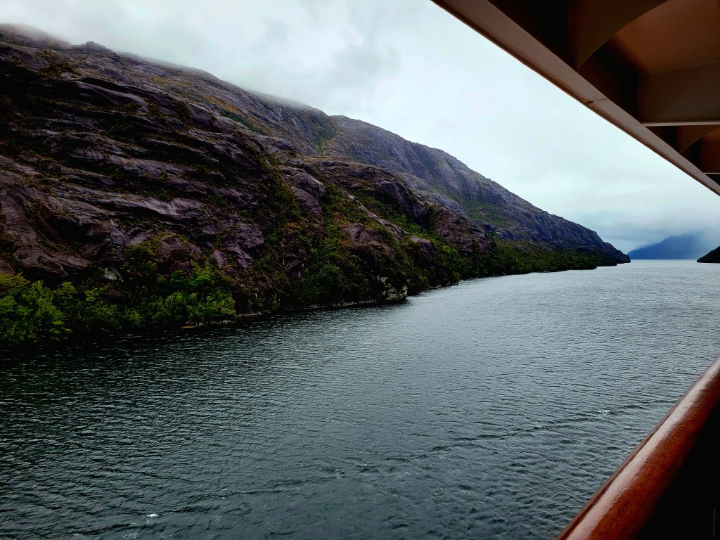 We were able to see all of it from the comfort of our room, with a pot of coffee. Can’t get any better than that. The bow was open for viewing, but still having a bit of a cold, our warm & dry room was a much better option. After an hour of viewing, our amazing Captain Kevin, sailed us through “the Abyss”. This route was added when he needed to cancel rounding the Horn. Turns out it definitely was to our benefit. It is the narrowest strip of water I’ve ever sailed in a large cruise ship.