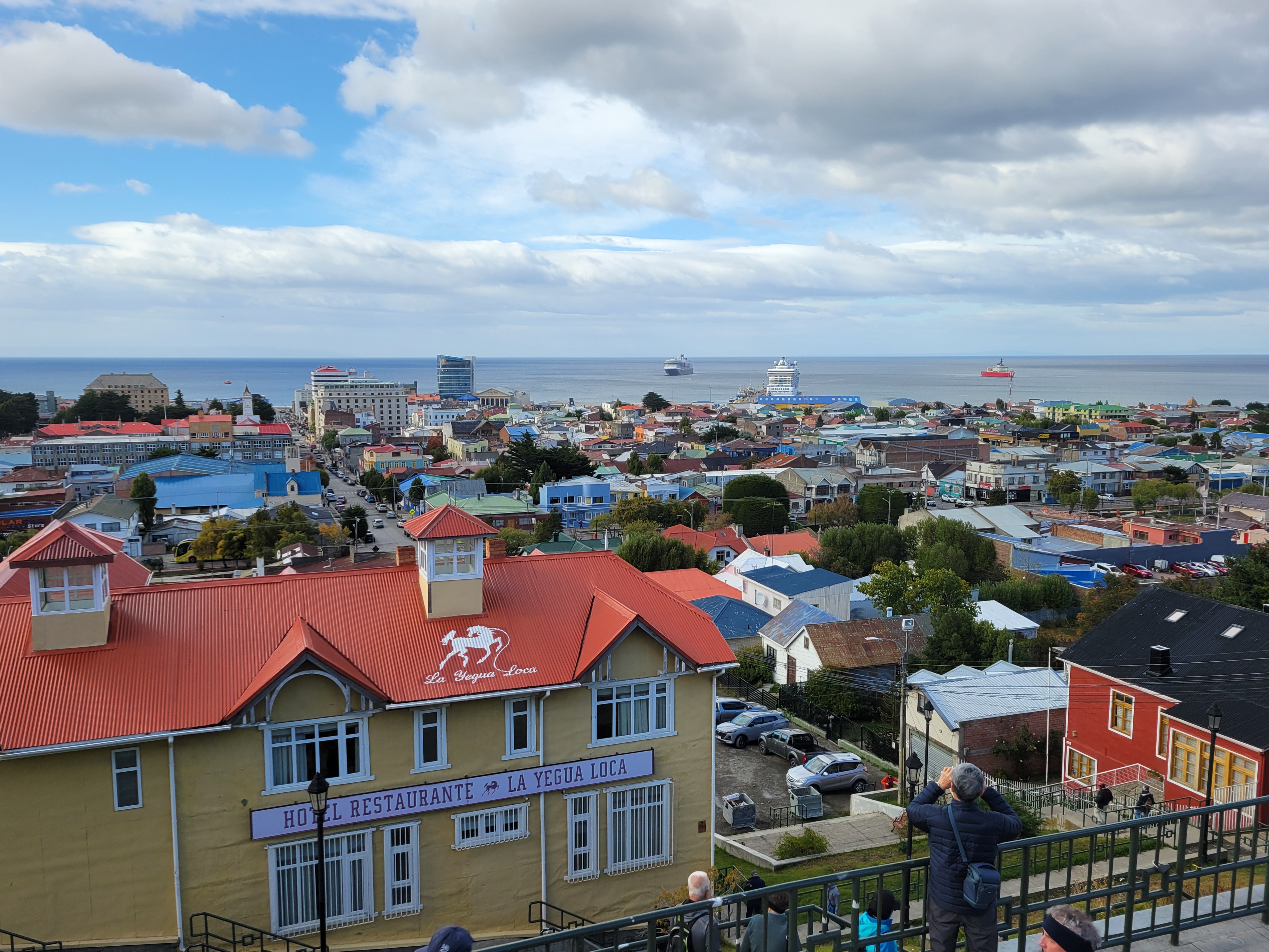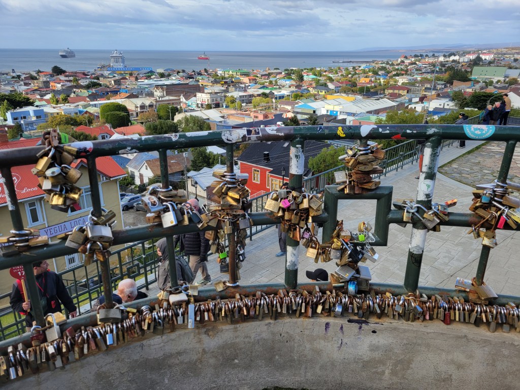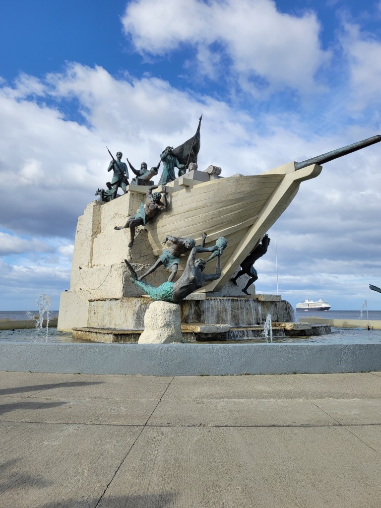 We were waitlisted for an excursion, so we just tendered in and decided to take our chances. Thanks to David Mendez, a co-worker of Juli’s, I had a list of sites to see. Those of you who know me, I always book from the ship, just in case … but lady luck was with us. We took a tour with the first guy we saw, and it turned out so well. A small group of 16 and we all got along. The driver only spoke Spanish, but one of the ladies did translation for the rest of us. He also had English translation of all the sites. It was so nice and the weather cooperated. It was only $30 per person for 3 hours. Since we were such a small group, we saw everything easily. Someone needed water, so he stopped at a gas station/market. Pat asked about getting good empanadas. At the end of the tour, he stopped at a bakery, and we all got the best empanadas yet. They were fresh, big and only $2. It started to rain on the way back to the ship.