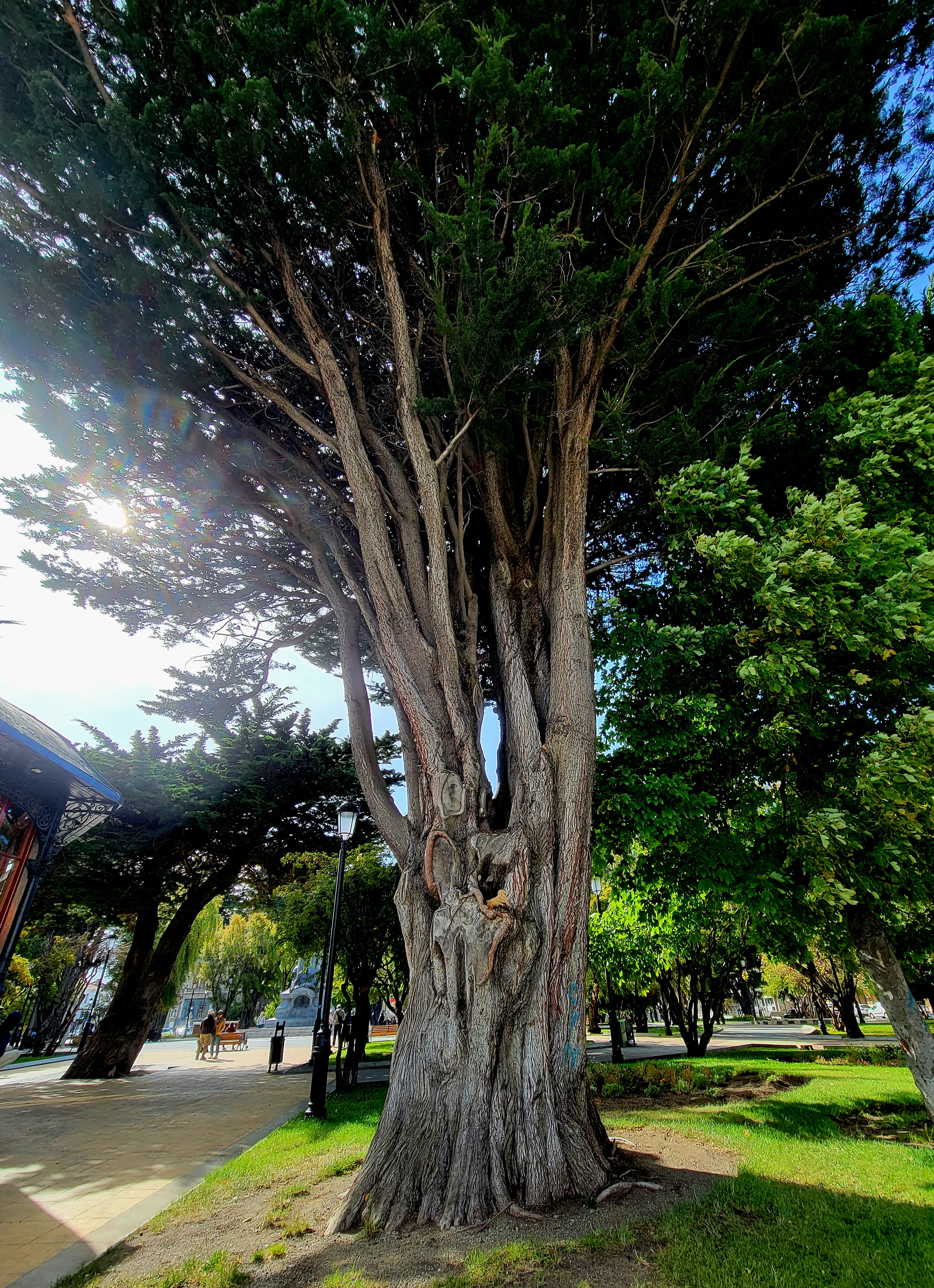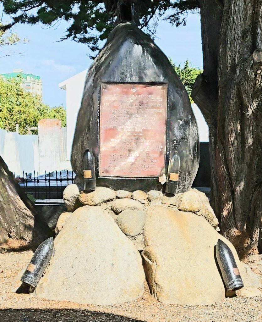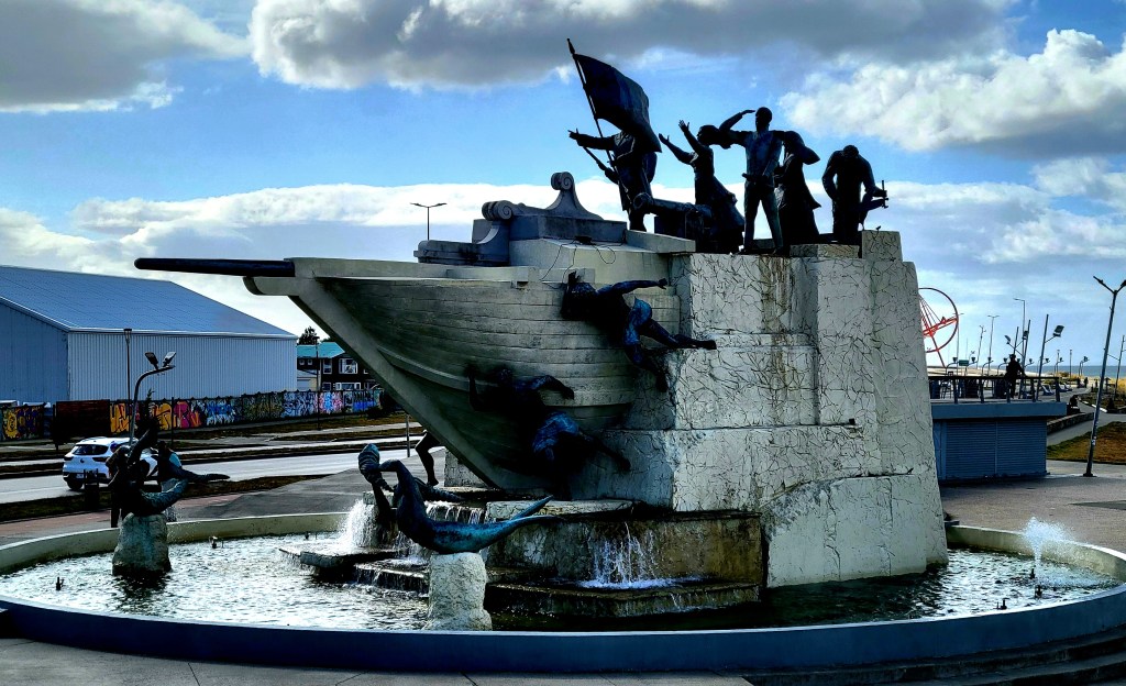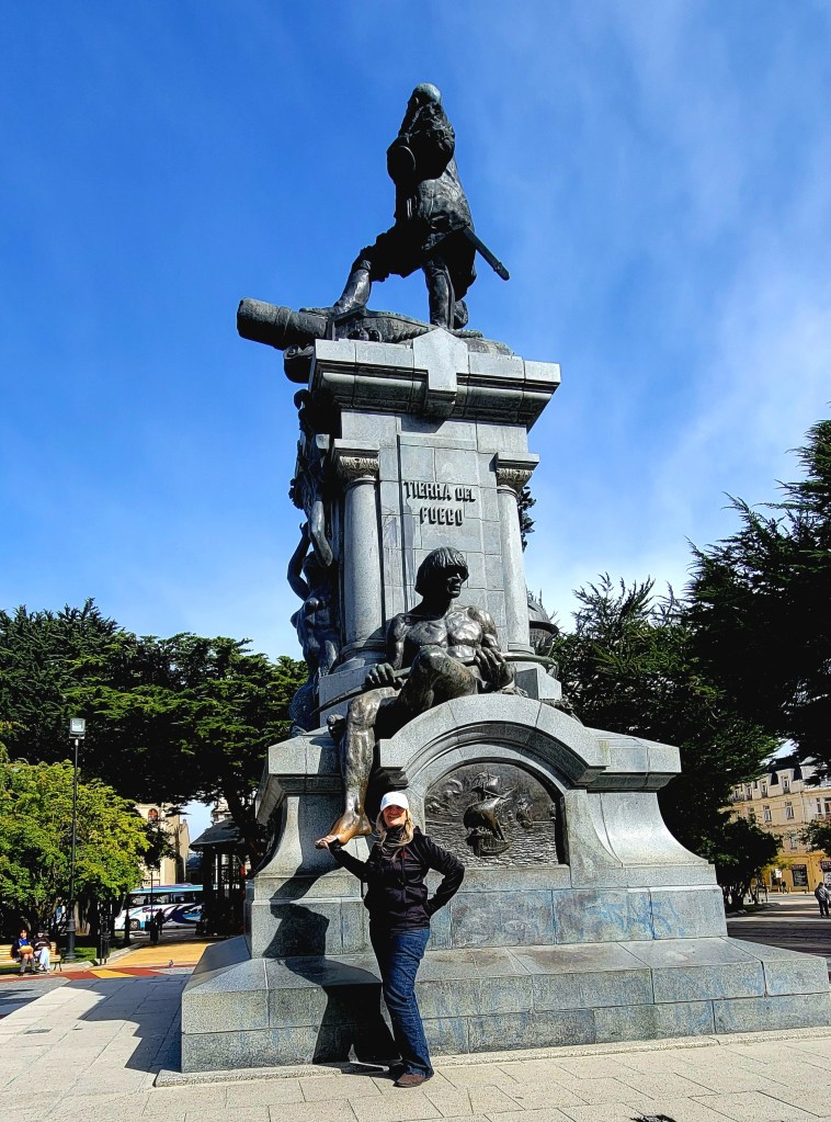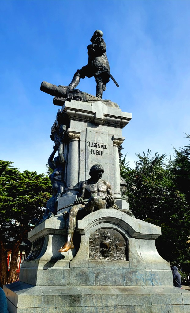 Plaza de Armes you will find the Monument to Ferdinand Magellan. It is located in the center of the Muñoz Gamero square, in the city of Punta Arenas. It was inaugurated in 1920 and dedicated to the commemoration of the fourth centenary of the discovery of the Strait of Magellan by Western navigators. This monument corresponds to a large sculpture (10 meters high), made of bronze, on a cement base and with a bronze plaque by the sculptor Guillermo Córdova at the request of the Spanish businessman José Menéndez. The sculpture represents the Portuguese explorer Ferdinand Magellan, who set sail from the port of Seville on August 10, 1519, in command of five ships that undertook the voyage of circumnavigation of the planet: the Trinidad, the Concepción, the San Antonio, the Victoria and the Santiago. Only the Victoria completed the entire voyage. The objective of Magellan’s voyage was to find a navigation route through the waters of the extreme south, to reach the Moluccas Islands. Ferdinand Magellan standing tall on a cannon and with his hat in his right hand. On one side of the cement base there is a bronze sculpture of a Patagonian indigenous man and, on the other side, a sculpture of a young woman with her arms raised. According to local tradition, touching the foot of the Patagonian man ensures a return to Patagonia. The statue is surrounded by a lovely garden and beautiful trees creating a picturesque setting at the heart of Punta Arenas.