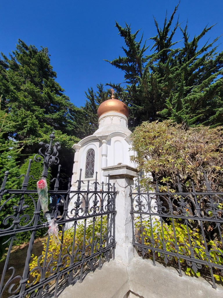 This large donation may also be a reason for her having her own walled off patch of turf inside the cemetery with her elegant mausoleum and garden and trees included