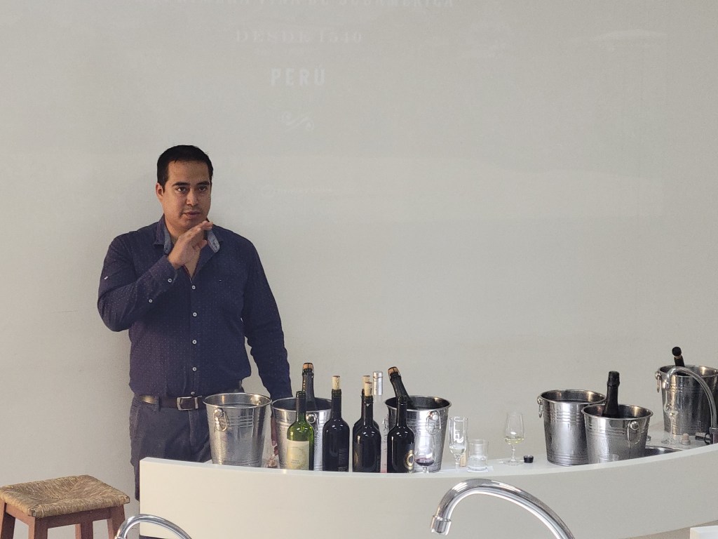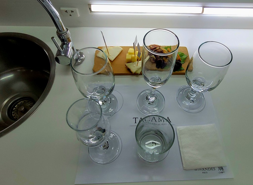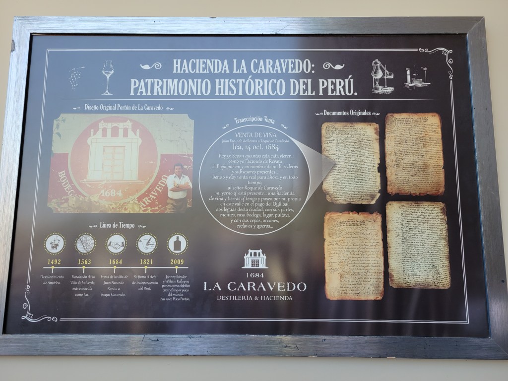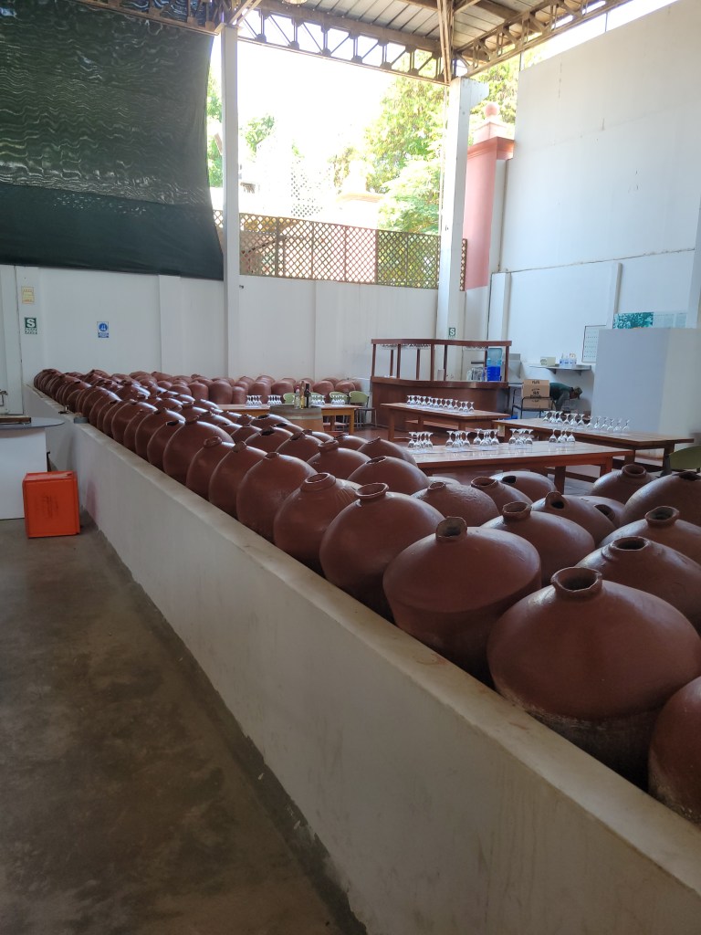 Next, a visit to Hacienda La Caravedo, the oldest working distillery in the Americas (established in 1684). We saw how the highly-regarded Pisco Portón is crafted by hand in small batches using artisanal distilling techniques. They make about 1 million bottles a year. The average bottle takes 7 kilos of grapes per bottle. The best Pisco take 14 kilos of grapes per bottle. We met the makers and taste five different types of Pisco, well Patrick did. I’m not a fan of strait Pisco, but a Pisco Sour is very good.