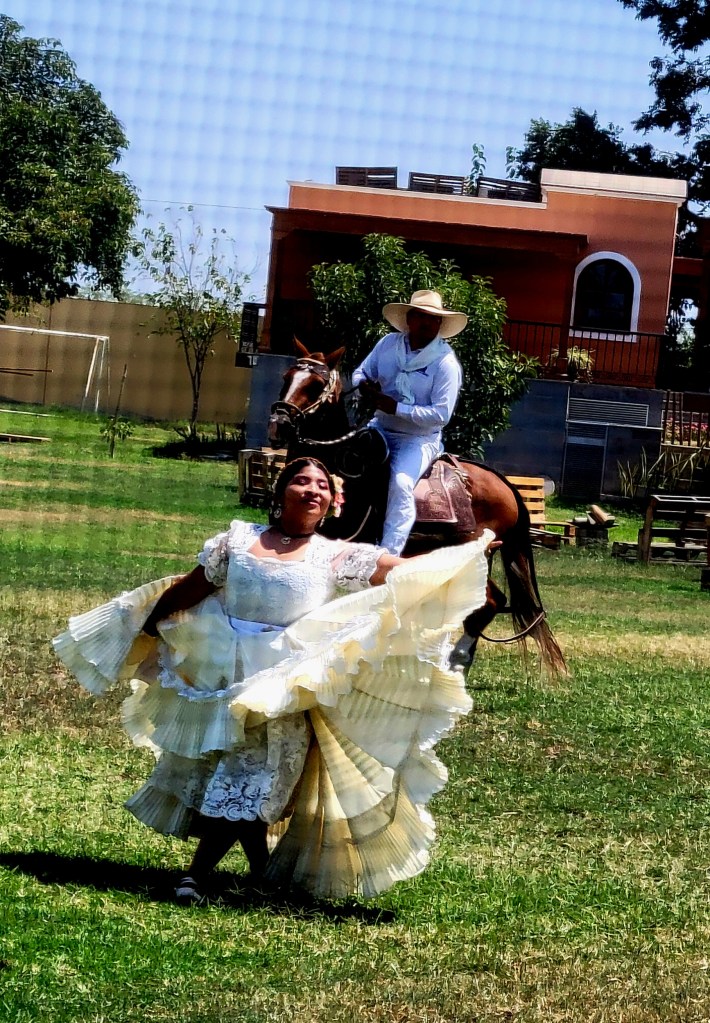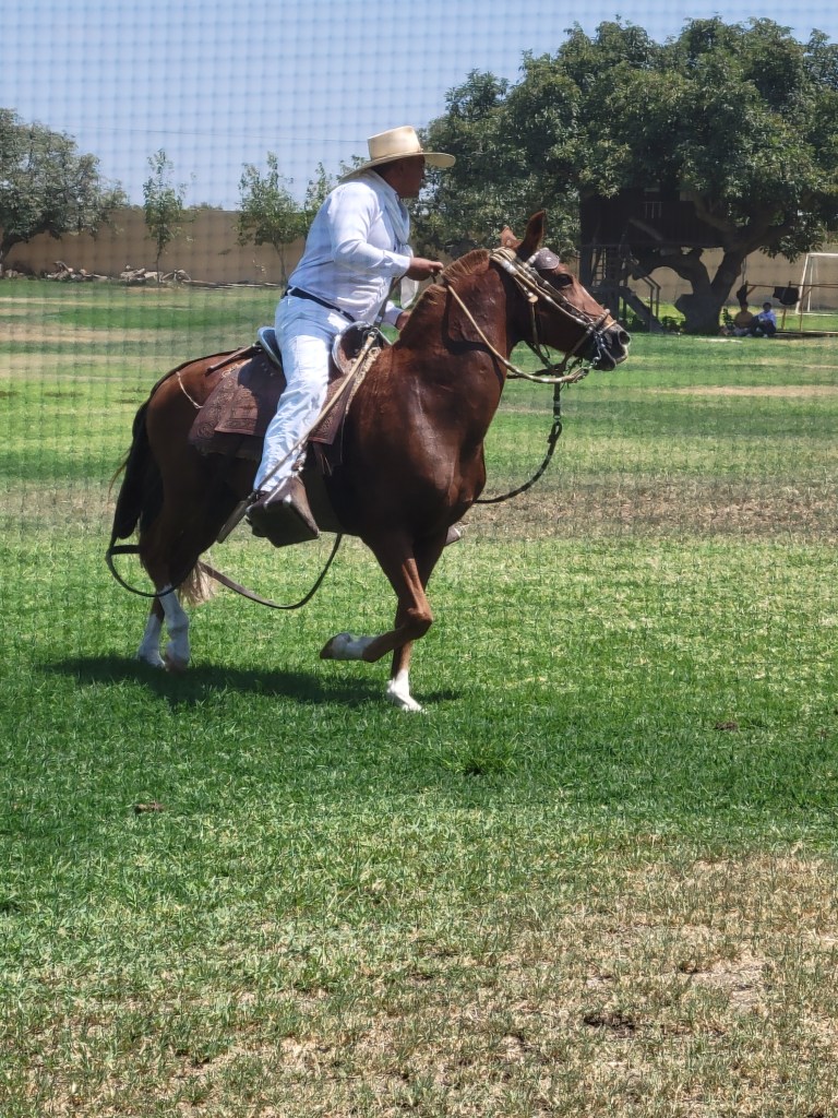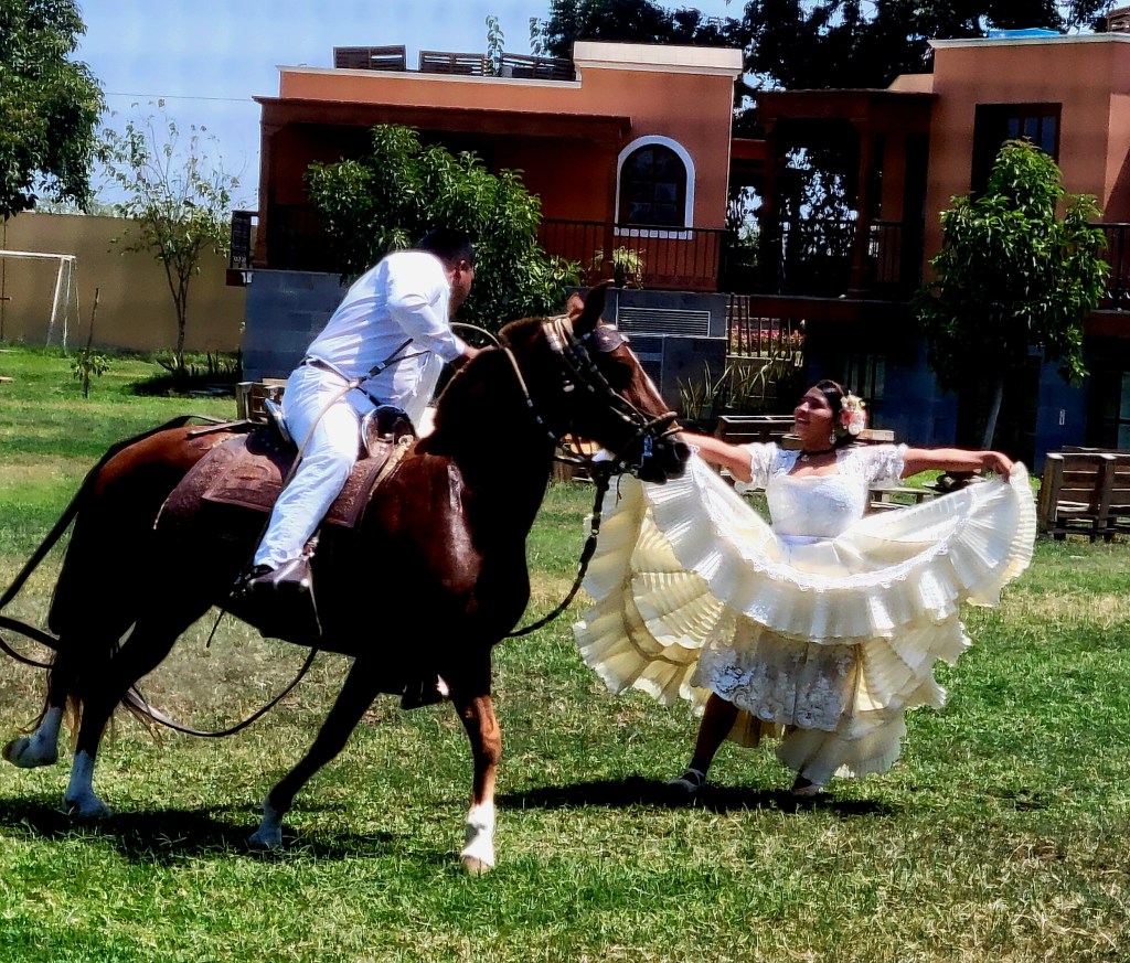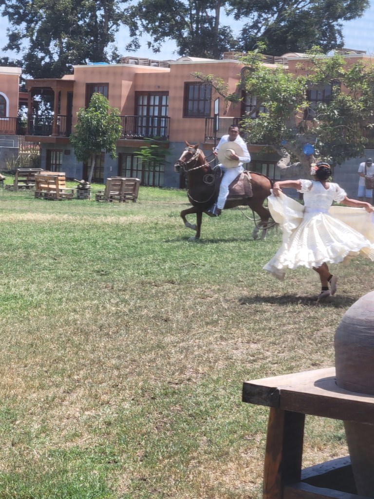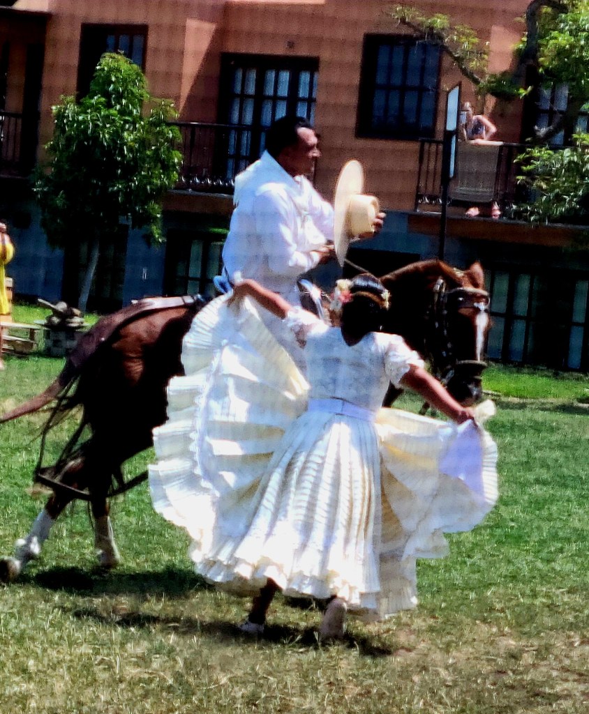 We had a lunch of local cuisine accompanied by a Peruvian Paso horse show. There were three courses; salad of marinated lima beans with thinly sliced onion, and tomato; main course was roasted pork, rice and more lima beans; dessert was Ice cream. Paso horses have the smoothest gait, a stunning equestrian demonstration set to the rhythms of marinera — a traditional form of music that combines Peruvian, African and Spanish influences. The dancers were very talented.