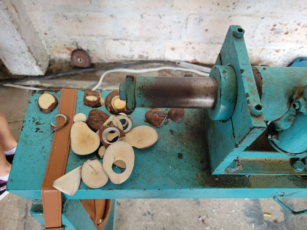 First, we visited a family owned Tagua factory, but factory is a loose term. It was a large area, covered on the ground with Tagua seeds, drying in the sun, and we drove our bus over them!!! Then a few stations under a tented area. Like really ???? a factory ??? This ended up being one the best artisan spots. Tagua nut, also known as vegetable ivory, is a product made from the very hard white endosperm of the seeds of certain palm trees. Vegetable ivory is named for its resemblance to animal ivory. Vegetable ivory is naturally white with a fine marbled grain structure. It can be dyed; dyeing often brings out the grain. It is still commonly used in buttons, jewelry, and artistic carving.